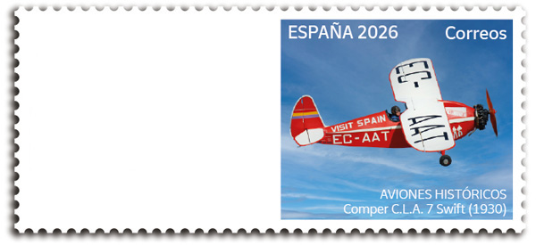 The Correos philatelic service has announced the first three variable value stamp issues planned for 2026. The first two designs are dedicated to the International Year of Rangelands and Pastoralists (IYRP, or AIPP in Spanish), and a new historic aircraft, the 1930 Comper C.L.A. 7 Swift.
